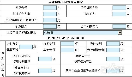 注意: 如果没有建立党组织,需要填写党员人数、申请入党人数、党建工作指导员姓名、拟建党组织时间。如果 没有党建工作指导员,则党建工作指导员姓名填写“无”。 第六步:录入高新技术企业信息