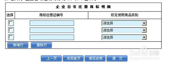 注意: 企业名称和注册号由系统带出,中关村高新技术企业证书编号:要符合中关村高新技术企业编码规则。高新技 术领域,以高新技术企业证书颁发机关认定的高新技术领域填报。从业人员总数由系统自动带出,高中、中专 学历人数+大专、本科学历人数+研究生学历人数<=从业人员总数,30岁以下人数+30-40岁人数+40岁以上人数 =从业人员总数,中国(大陆)人数+外籍及港澳台同胞人数=从业人员总数 第七步:企业自有注册商标明细