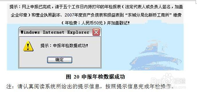 如确认无误,请点击“确定”按钮。 用户根据页面中所提供的提示信息,进行下一步年检操作。
